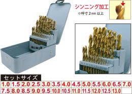 ハイス鋼を母材にチタンをコーティングし、強度・切れ味を向上させたドリルセットです。